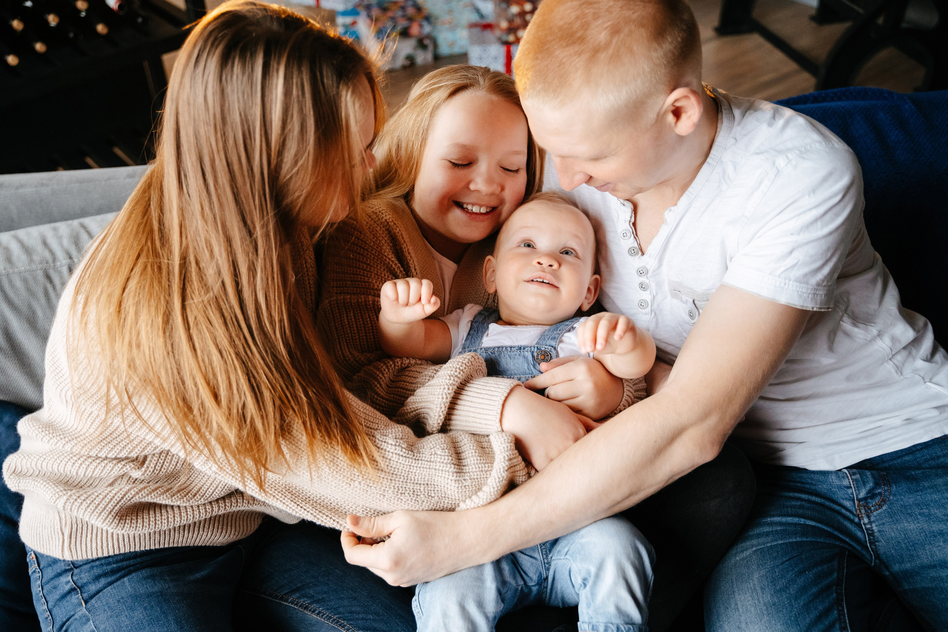 Семейная фотосессия в уютной обстановке.